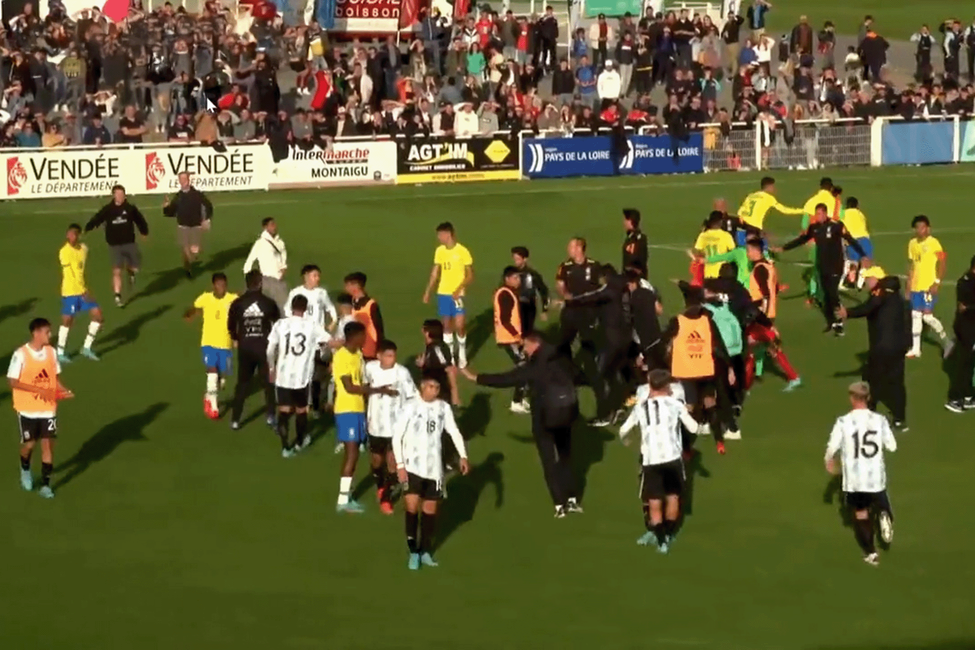 يعود الفيديو المتداول إلى نهائي بطولة مونتايغو تحت 17 عامًا في فرنسا عام 2022، حيث انتصرت البرازيل على الأرجنتين بنتيجة 2-1. شهدت المباراة تألق لاعبين صاعدين من البرازيل مثل أندريك وغيليرمي، وسجل كلاهما أهداف الفوز. لكن اللحظات الأخيرة بعد صافرة النهاية شهدت انفجارًا للتوترات المتراكمة طوال اللقاء.
