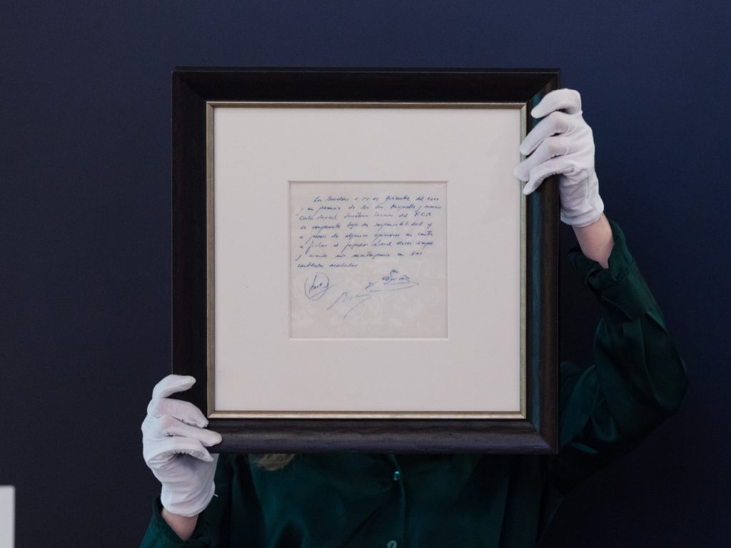 وتم إبرام عقد رسمي لاحقا، لكن الوكيل الأرجنتيني جاجيولي احتفظ بهذا الإثبات الأولي للاتفاقية منذ 25 عاما تقريبا وقرر بيعه في المزاد.