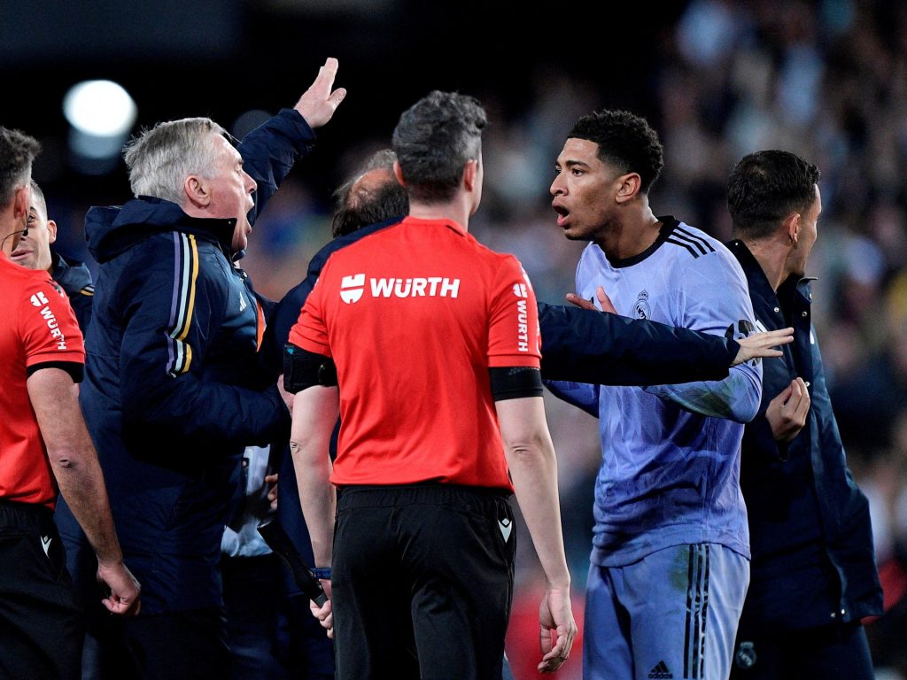 وقال تقرير الحكم إن بيلينغهام أظهر “أسلوبا عدوانيا” عندما اعترض على قرار مانزانو بإطلاق صفارة النهاية عندما حول لاعب منتخب إنجلترا تمريرة إبراهيم دياز العرضية إلى شباك فالنسيا في الوقت بدل الضائع أملا في تحقيق الفوز.