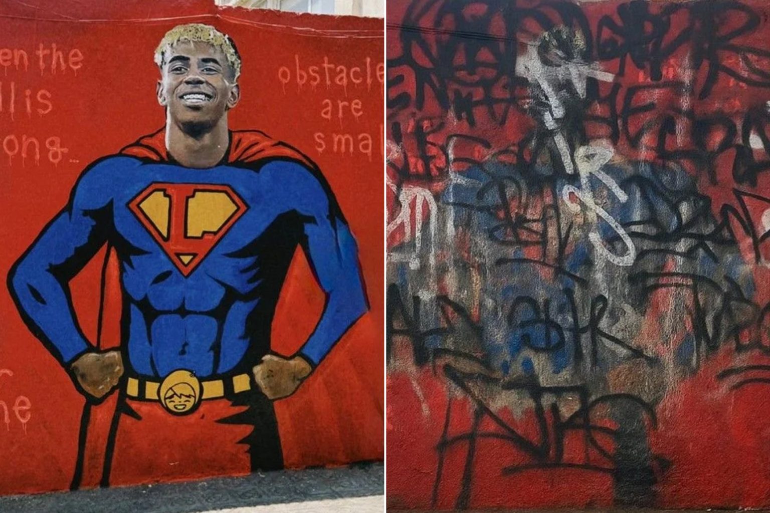 تعرّضت جدارية موهبة البارسا لامين جمال التي أنجزها الفنان “تي في بوي” في أحد شوارع برشلونة لعملية تخريب.