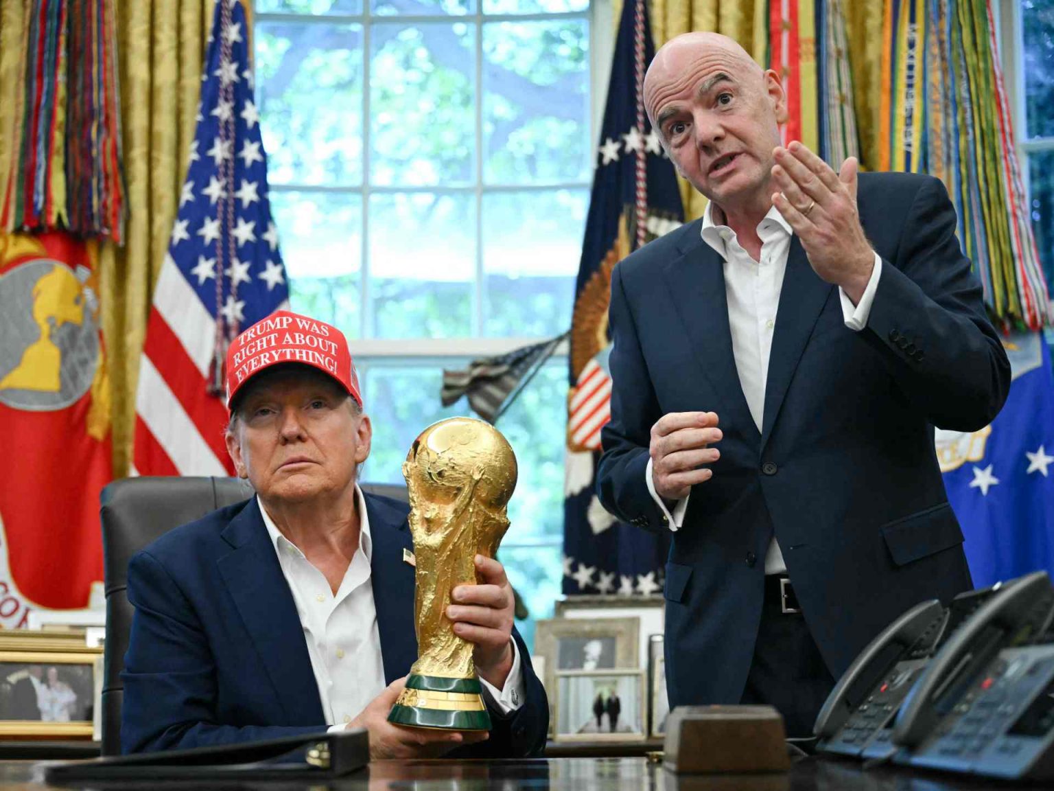 قال ترامب، جالسا في المكتب البيضاوي إلى جانب رئيس الاتحاد الدولي للعبة (فيفا) السويسري جاني إنفانتينو، وهو يمسك كأس العالم بين يديه واضعا على رأسه قبعة حمراء تحمل الشعار: “ترامب كان محقا في كل شيء”؛ قال “من المحتمل أن يكون هذا أكبر حدث رياضي”.