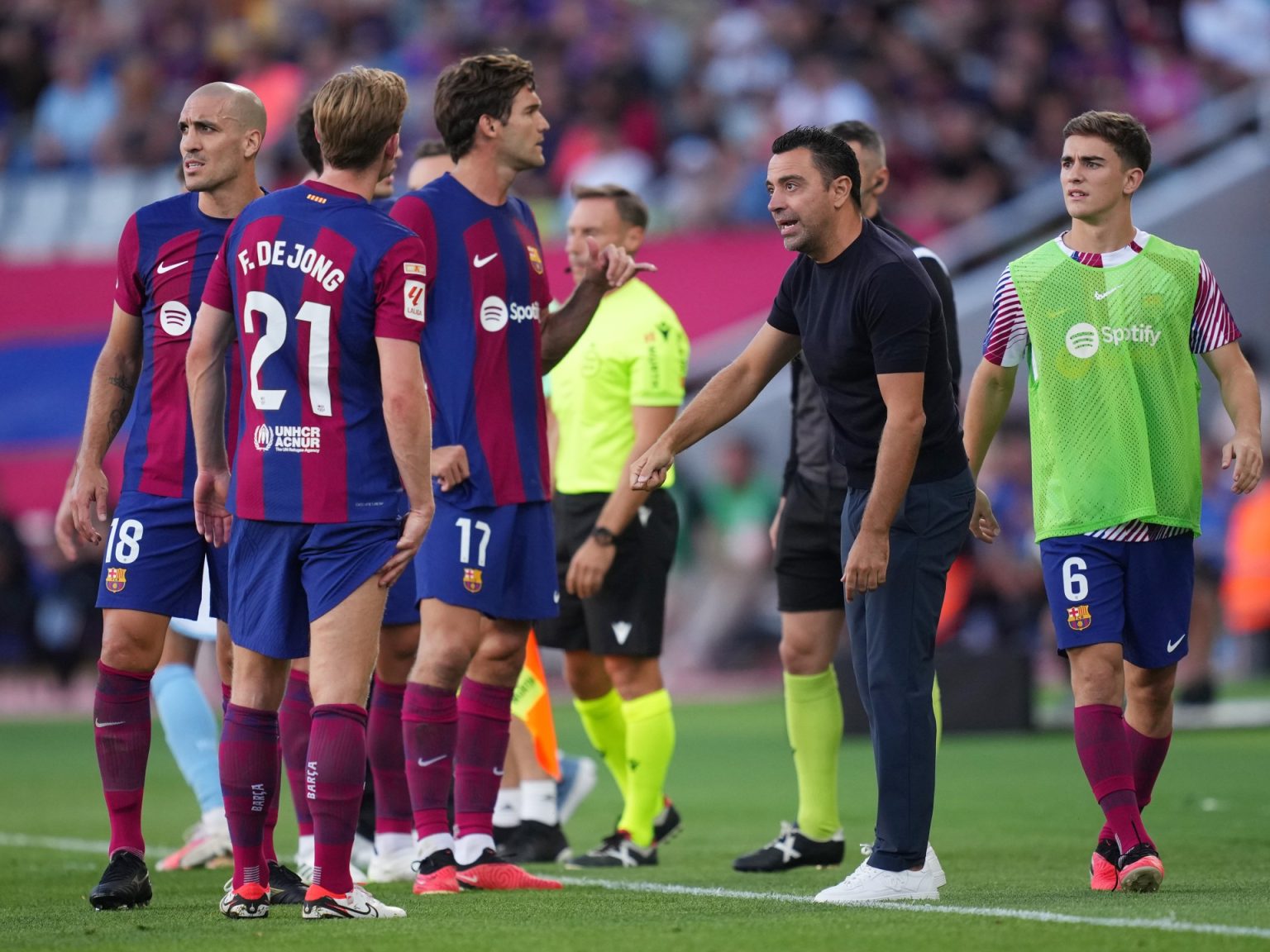 وفي الموسم الجاري، تمسك تشافي بالحارس مارك أندريه تير شتيغن وأندرياس كريستنسن ورونالد أراوخو وفرينكي دي يونغ وبيدري غونزاليس وروبرت ليفاندوفسكي وعثمان ديمبيلي الذي كان الوحيد الذي غادر في النهاية إلى باريس سان جيرمان، خلافا لرغبة تشافي.