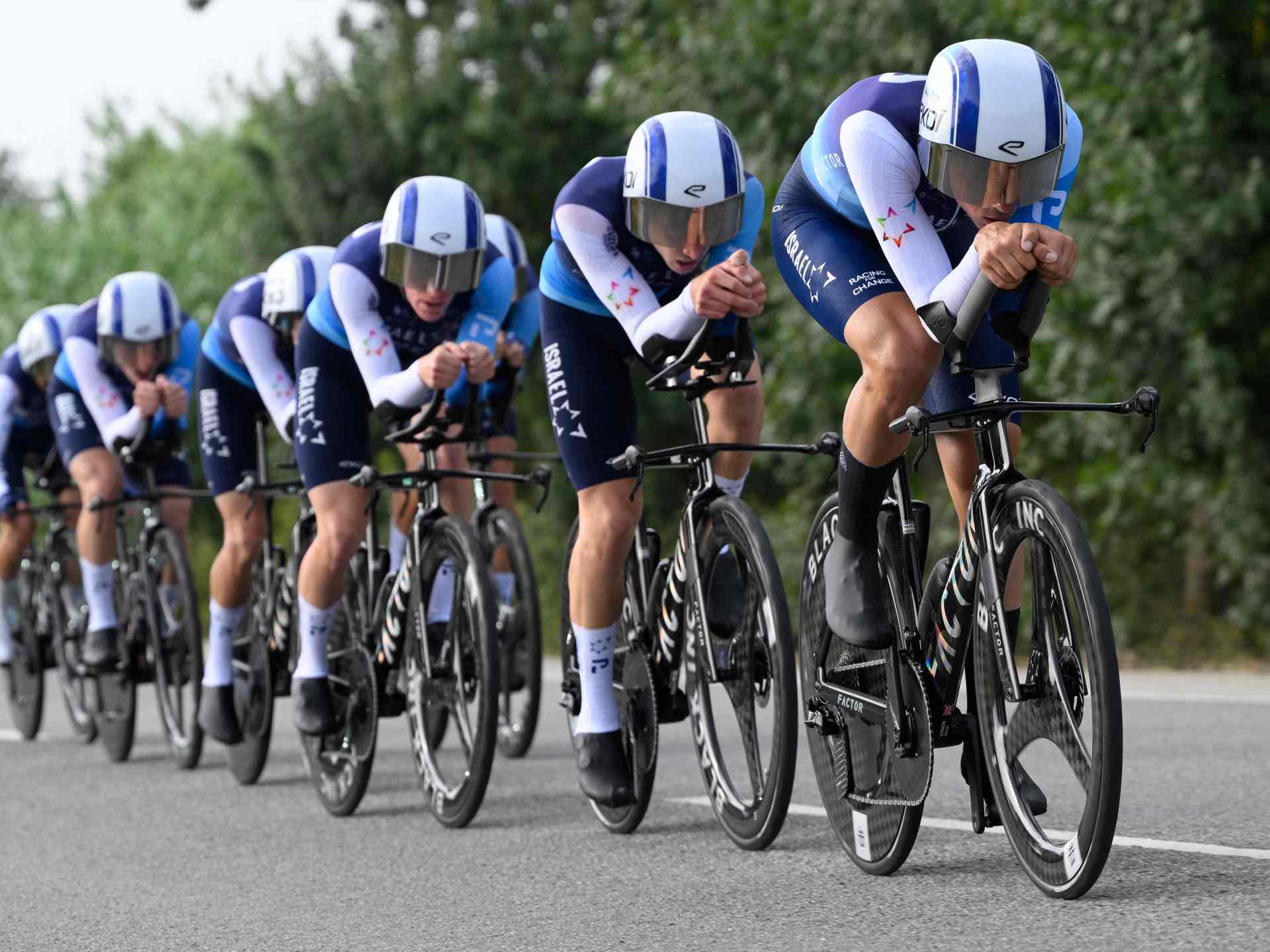 وخلال المرحلة الخامسة من سباق الفرق ضد الساعة في فيغيريس، أُجبر دراجو الفريق الإسرائيلي على التوقف أمام متظاهرين مؤيدين للفلسطينيين يحملون لافتة معادية لإسرائيل.