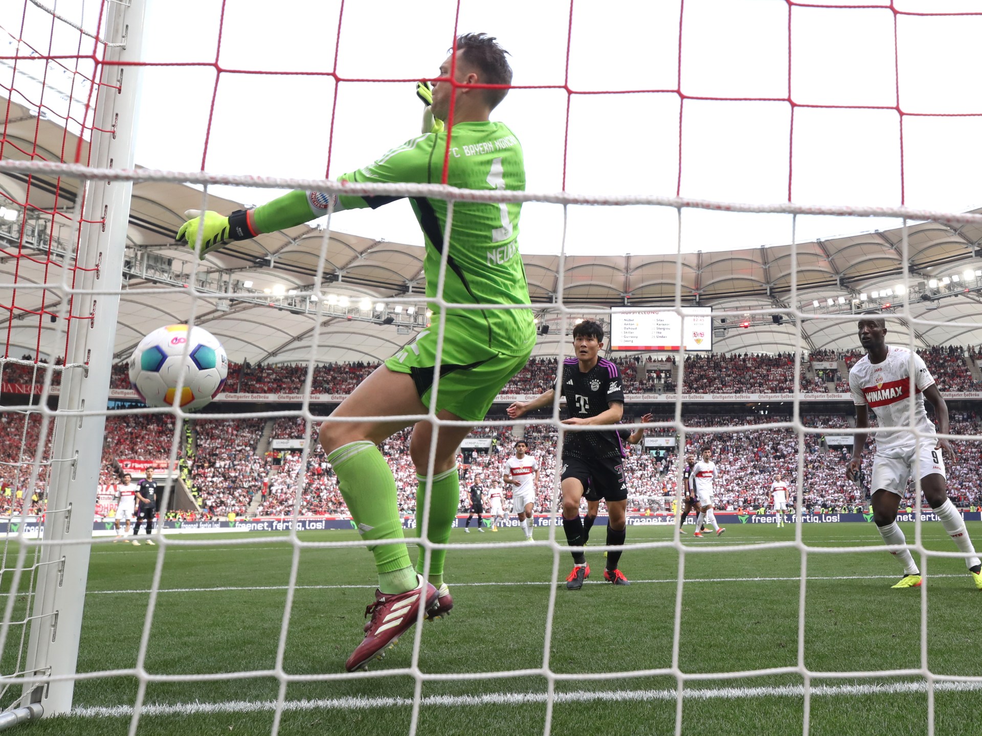 وتقدم شتوتغارت بجدارة بفضل تسديدة ليونيداس ستيرجيو من فوق الحارس مانويل نوير في الدقيقة 29 بعدما أهدر ثلاث فرص ذهبية.