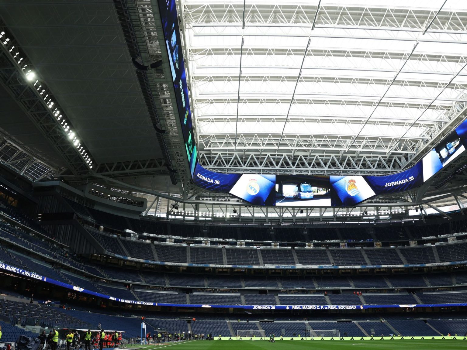 وتجاوز العمل، الذي بدأ في عام 2019، مراحله الإنشائية الرئيسية، مثل السقف والواجهة والعشب القابل للطي.
