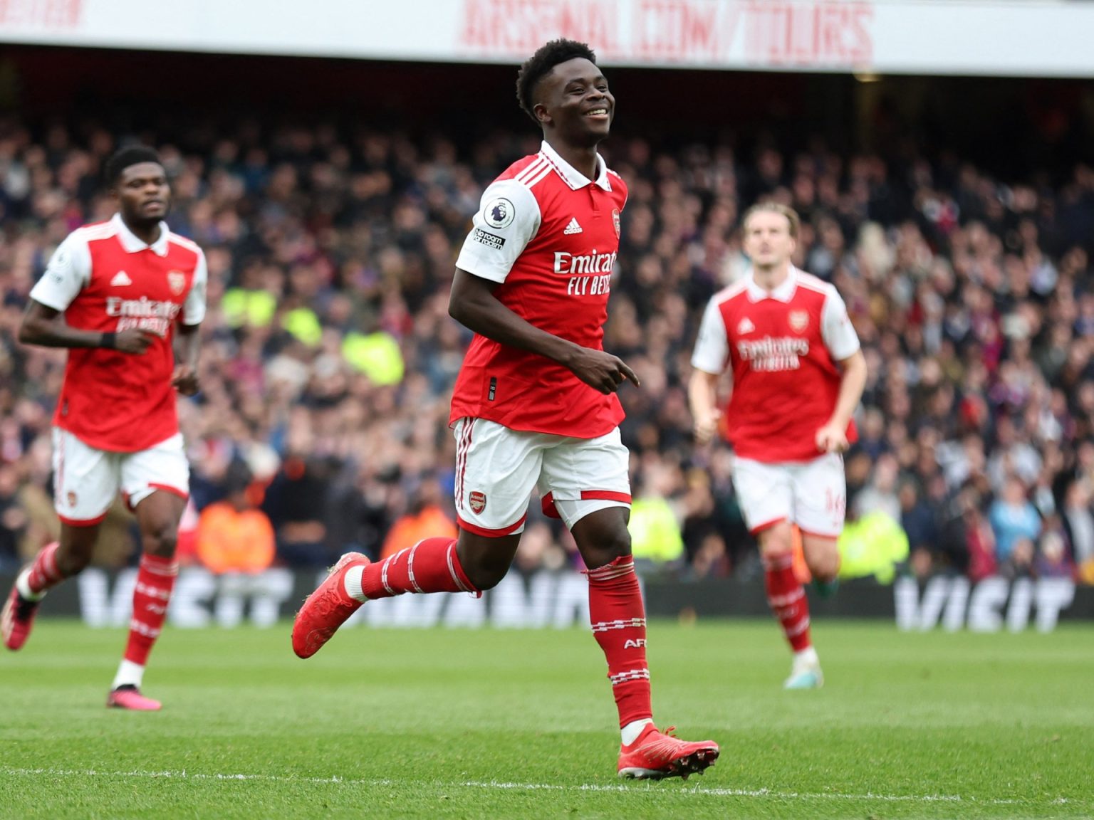وحقق ساكا رقما فريدا بتسجيله في 5 مباريات متتالية بالبريميرليغ، ليصبح أول لاعب إنجليزي يفعل ذلك منذ 30 عاما.