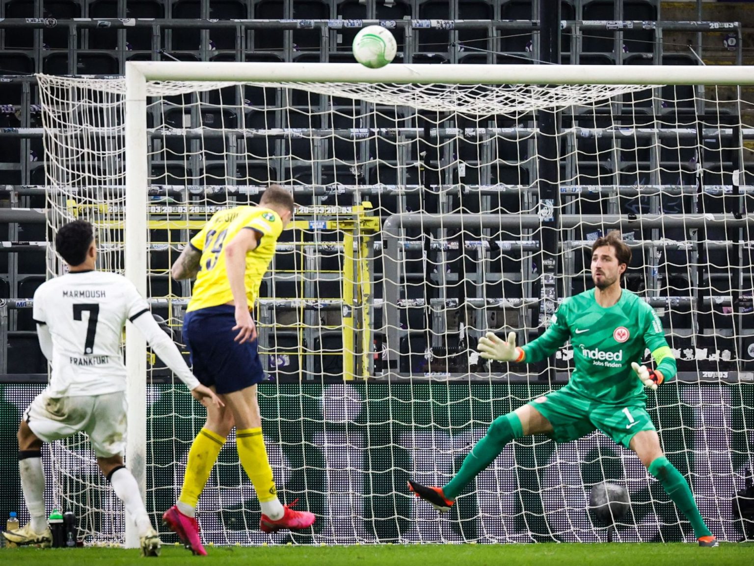 وتقدم فرانكفورت في الدقيقة الثالثة عن طريق فارس شايبي، قبل أن يضيف زميله ساسا كالادزيتش الهدف الثاني في الدقيقة العاشرة.