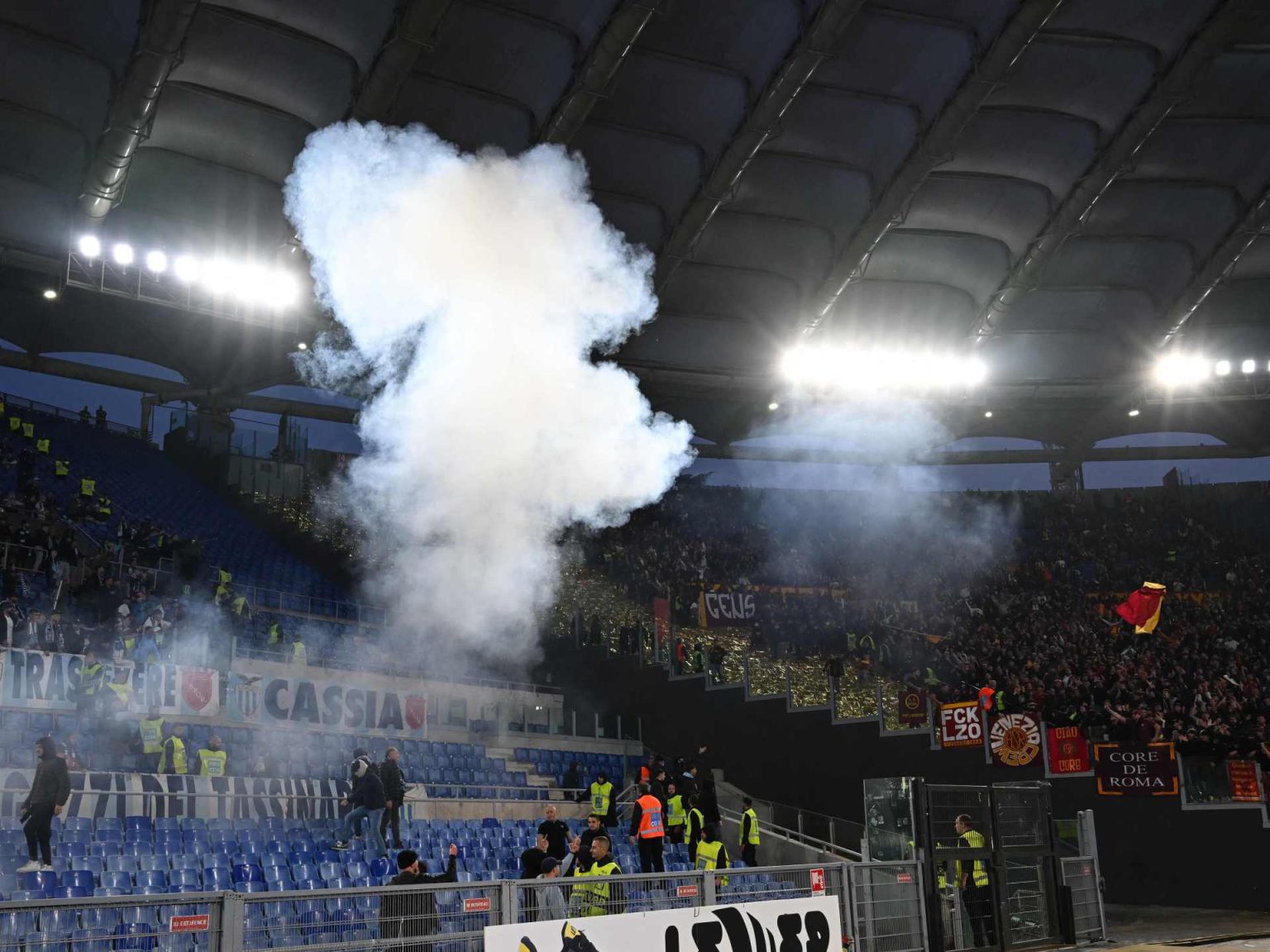 وأشارت التقارير الأولية إلى أن المشاكل بدأت عندما اقتربت مجموعة من جماهير لاتسيو من حانة تتجمع فيها جماهير روما عادة لحضور المباراة.