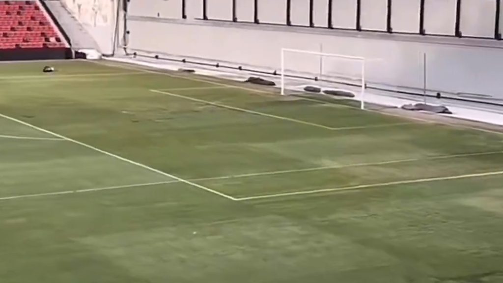 وانتشرت على مواقع التواصل الاجتماعي صور وفيديوهات تتندر وتسخر من حالة الأرضية التي ستستقبل أحد أفضل الأندية في العالم.