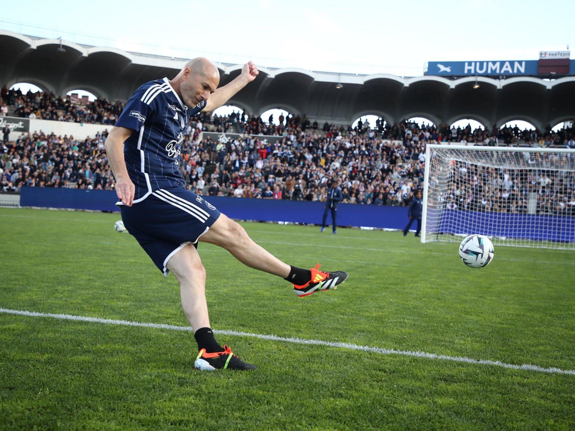 شاهد.. زين الدين زيدان يستعرض مهاراته الكروية مع أساطير بوردو