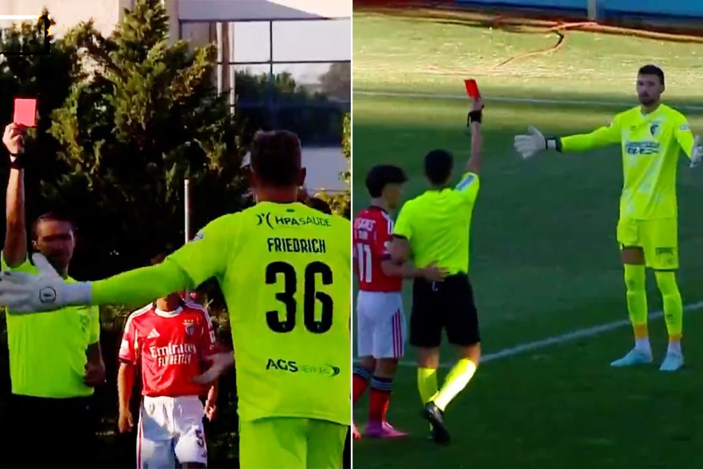 وكان بورتيمونينسي متقدّما في النتيجة 1-0 قبل أن يتلقى حارس مرماه سيباستيان سيبوا بطاقة حمراء مباشرة قبل دقيقتين من نهاية الوقت الأصلي للشوط الأول، بعدما ارتكب خطأ واضحا، إذ عرقل أحد مهاجمي “بنفيكا بي” خارج منطقة الجزاء، رغم كونه آخر لاعب في فريقه.