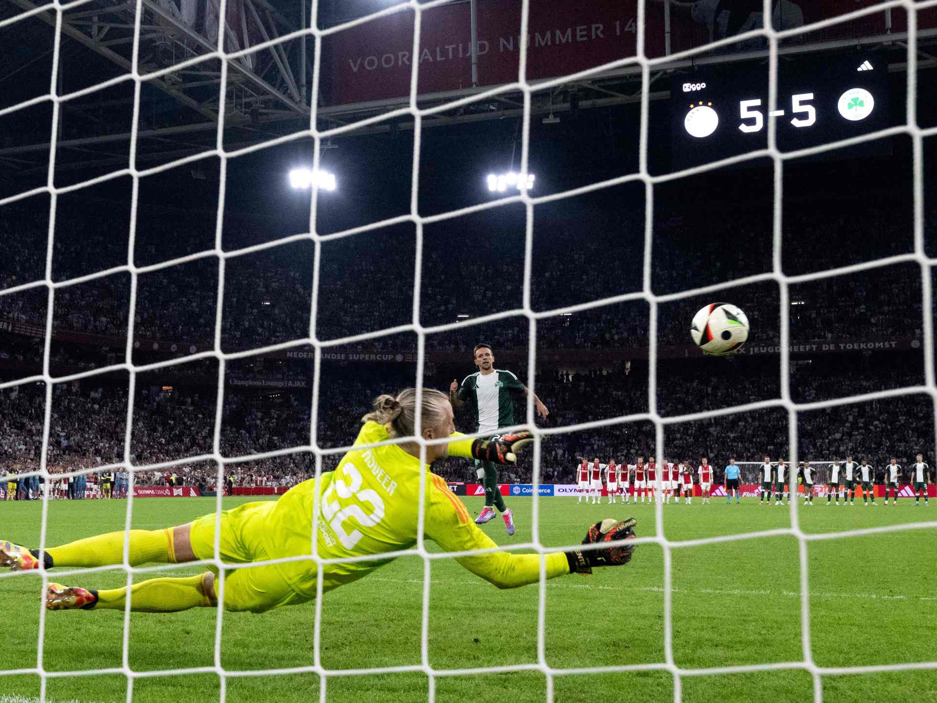 نفذ كل من الفريقين 17 ركلة ترجيحية قبل أن يحسم الدانماركي أنتون غايي النتيجة لمصلحة أياكس، في حين كان حارس مرماه نجم المباراة بلا منازع بتصديه لـ5 ركلات ونجاحه في ترجمة واحدة.