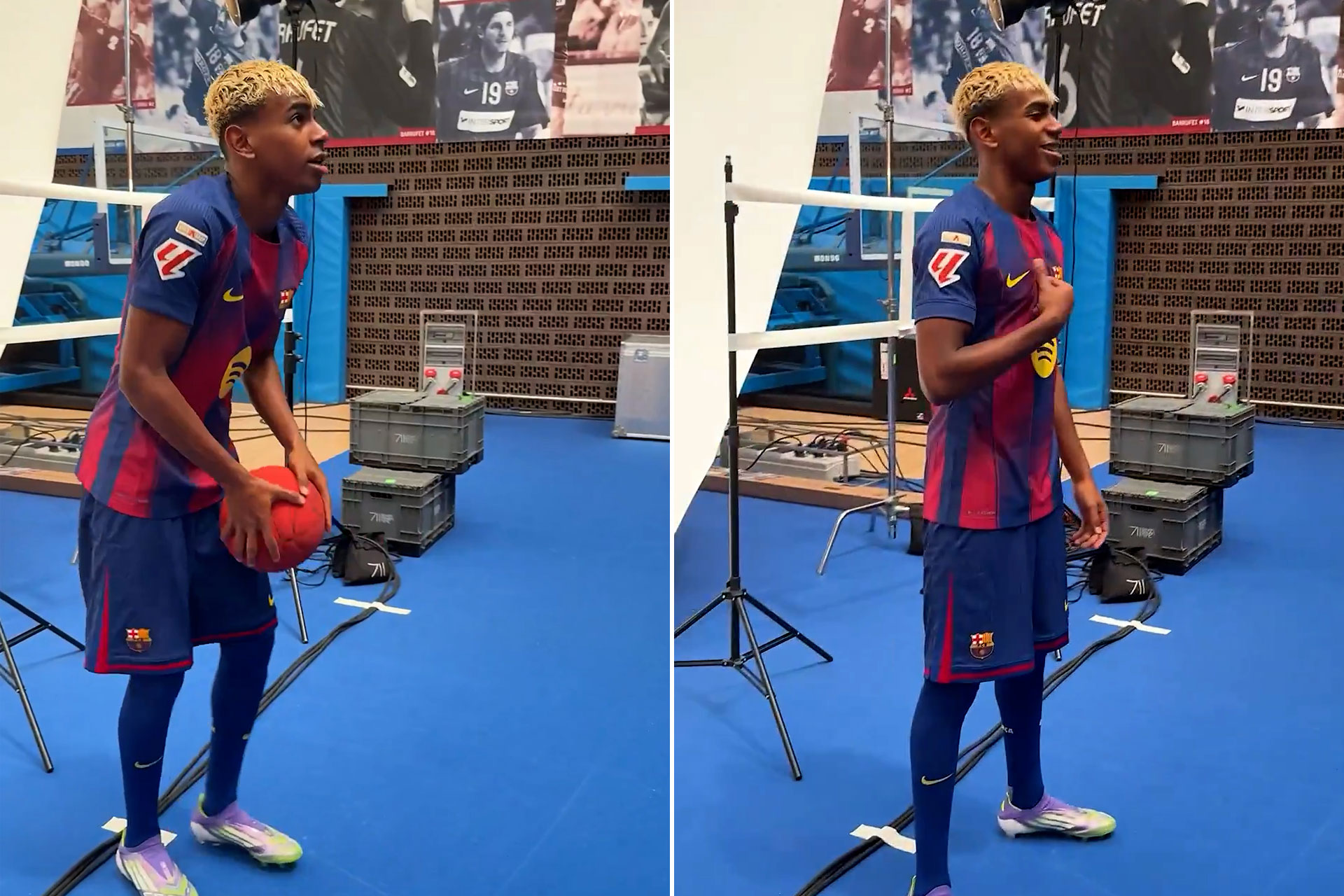 ونشر الحساب الرسمي لنادي برشلونة عبر منصة “إكس” مقطع فيديو لجمال وهو يتحدى أحد زملائه في الفريق من أجل تسجيل رميتين مباشرتين.