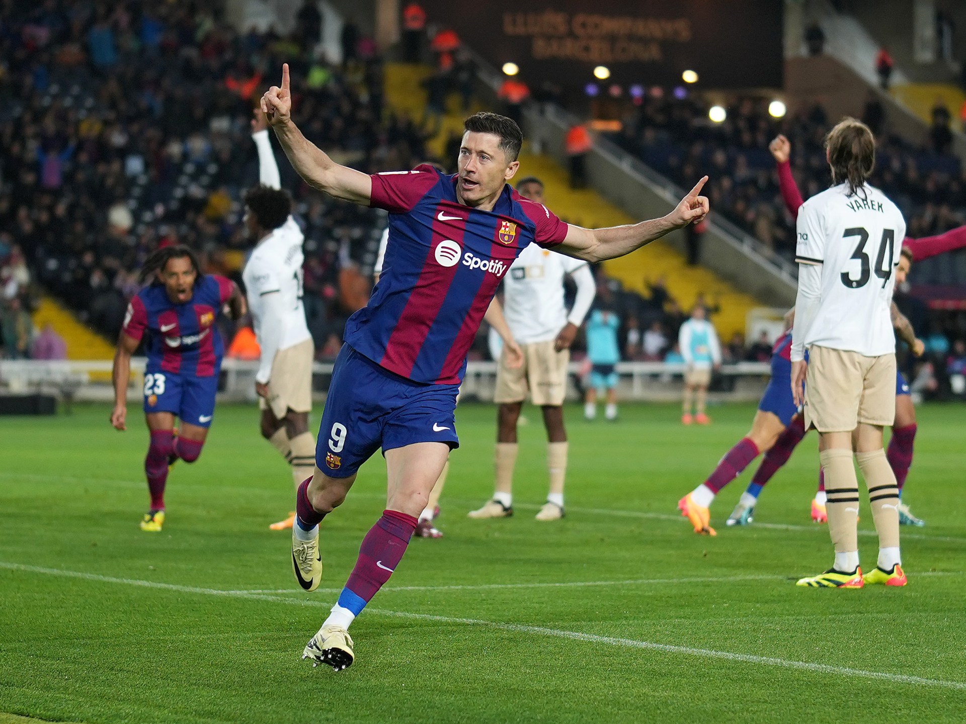 شاهد.. ليفاندوفسكي يقود برشلونة لاستعادة الانتصارات والمركز الثاني بالدوري الإسباني