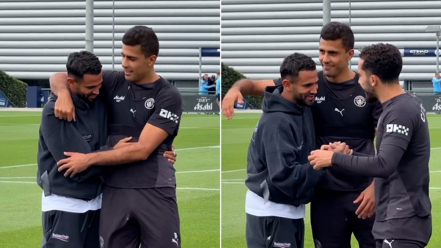 ظهر الدولي الجزائري رياض محرز، لاعب أهلي جدة السعودي، في إحدى الحصص التدريبية لفريقه السابق مانشستر سيتي، وحظي باستقبال حار من زملائه ومدربه السابق الإسباني بيب غوارديولا.
