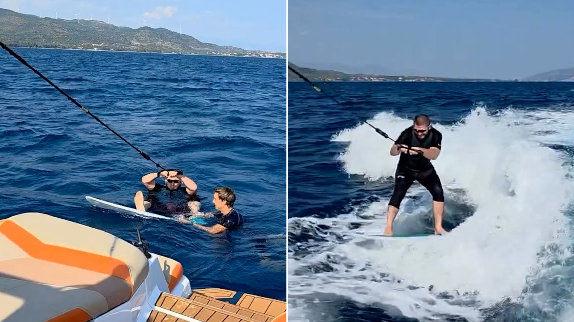 بعد نجاحاته الساحقة في عالم فنون القتال المختلطة، اختبر البطل العالمي السابق نورمحمدوف مهاراته في رياضة التزلج على الماء في أعقاب القارب أو ما يعرف بـ”ويك سيرفينغ” (Wakesurfing).