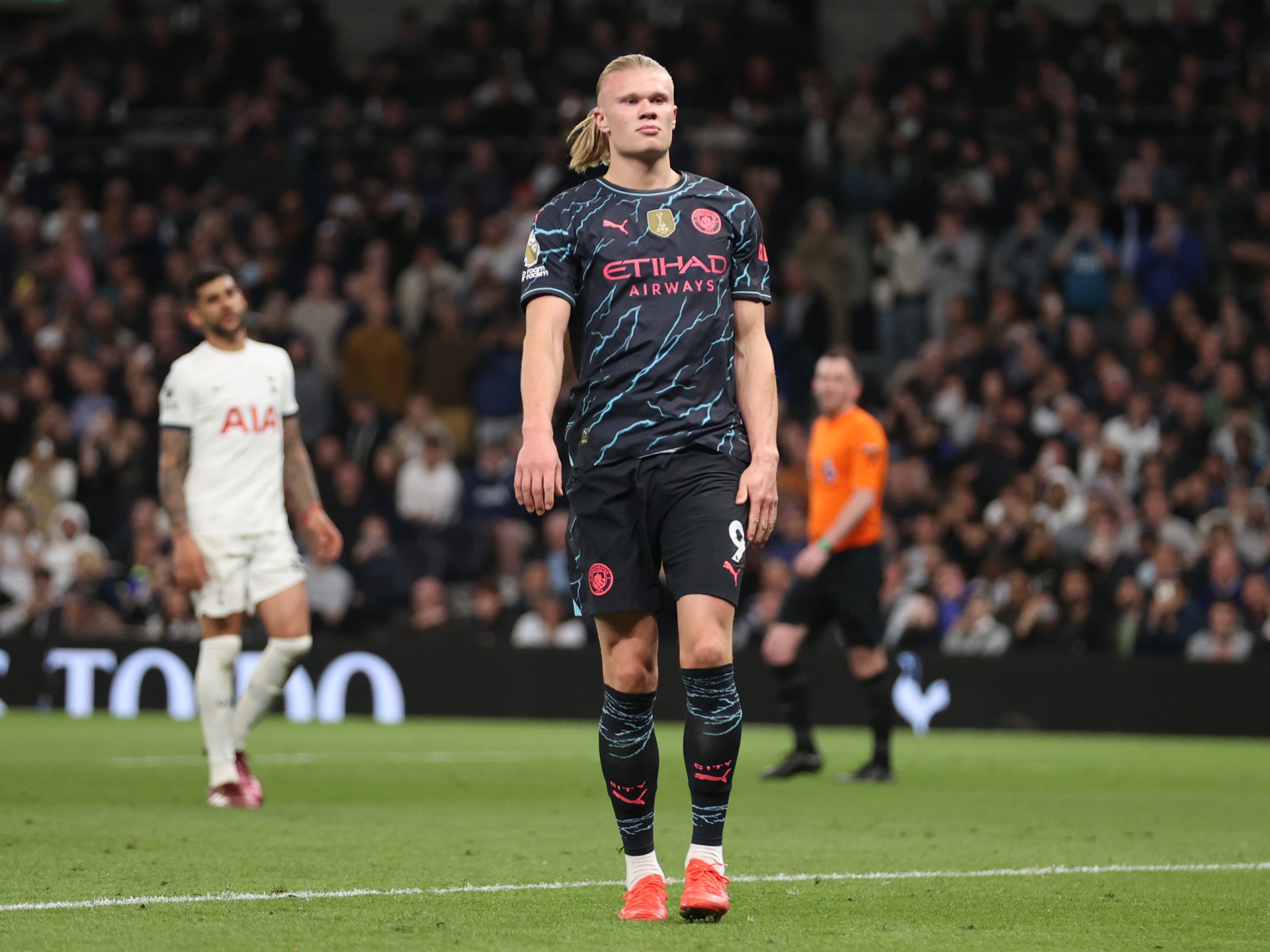 سجل إيرلينغ هالاند نجم مانشستر سيتي هدفين في شباك توتنهام ليقود فريقه إلى فوز ثمين خارج أرضه بهدفين نظيفين -الثلاثاء- في مباراة مؤجلة من الجولة الـ34 من الدوري الإنجليزي لكرة القدم.