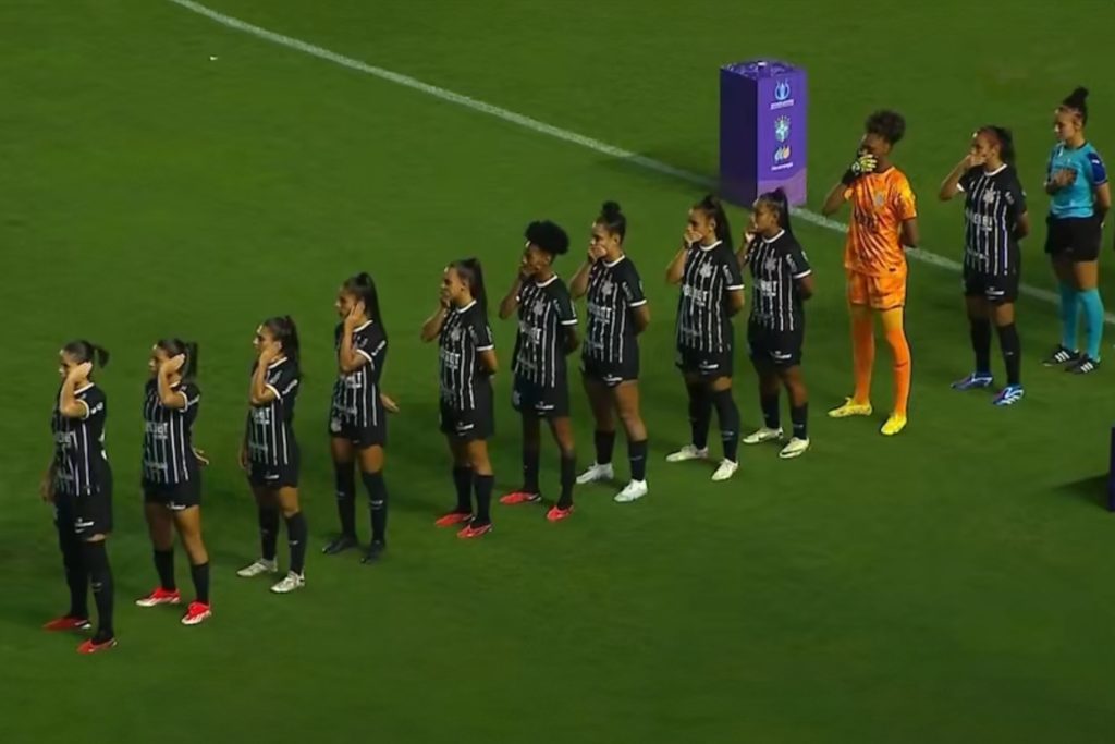 وتكرر مشهد قيام لاعبات سانتوس بكَمِّ أفواههن وآذانهن خلال مباراة فريقهن ضد كورينثيانز الجمعة أثناء عزف النشيد الوطني وذلك أمام المدرب كليتون ليما الذي جلس على مقاعد البدلاء.
