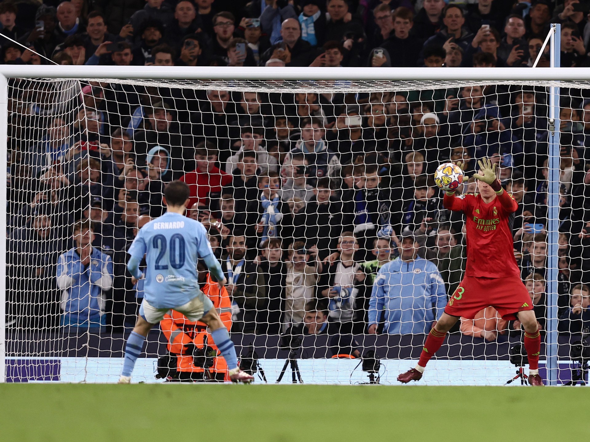 هذه المرة أخذ لونين بنصيحة مدربه وظل ثابتا في منتصف المرمى، ليتصدى لركلة برناردو بسهولة ويسهم في تأهل ريال مدريد إلى نصف النهائي.