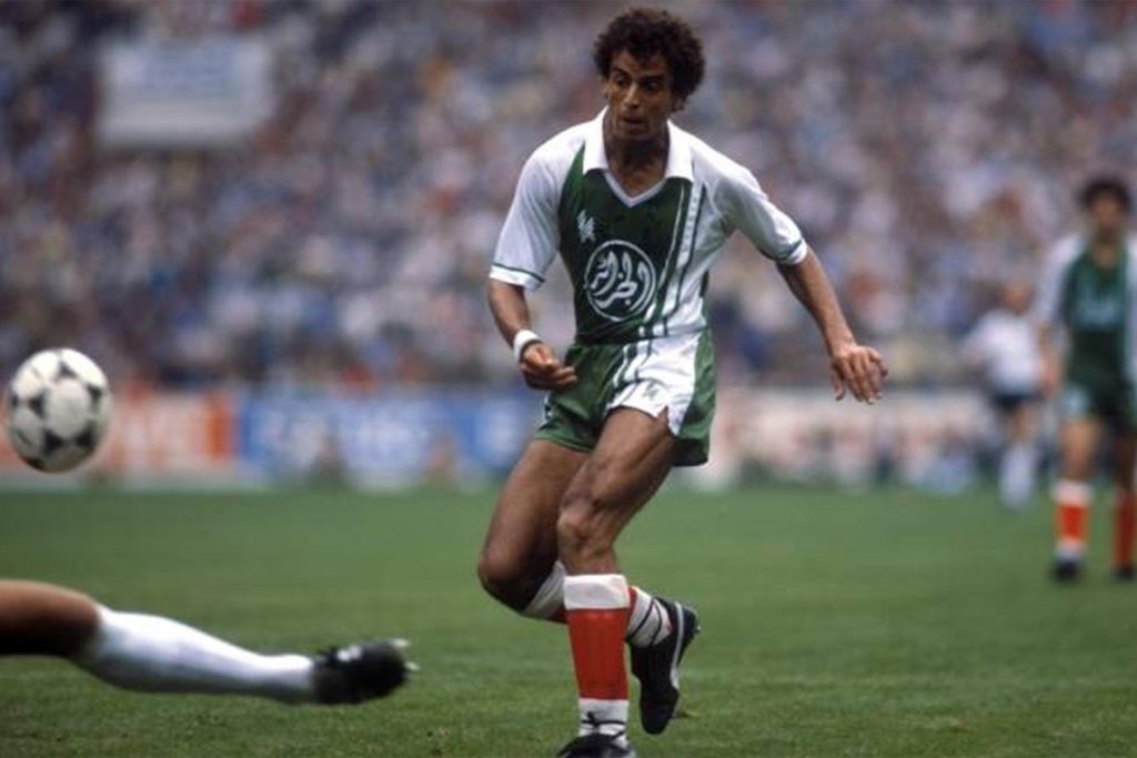 شهدت نهائيات كأس العالم 1982 التي احتضنتها إسبانيا ملحمة كروية عربية لا تزال عالقة بالأذهان حتى الآن عندما فجر المنتخب الجزائري أكبر المفاجآت وهزم حامل اللقب المنتخب الألماني (2-1) في مستهل منافسات المجموعة الثالثة.