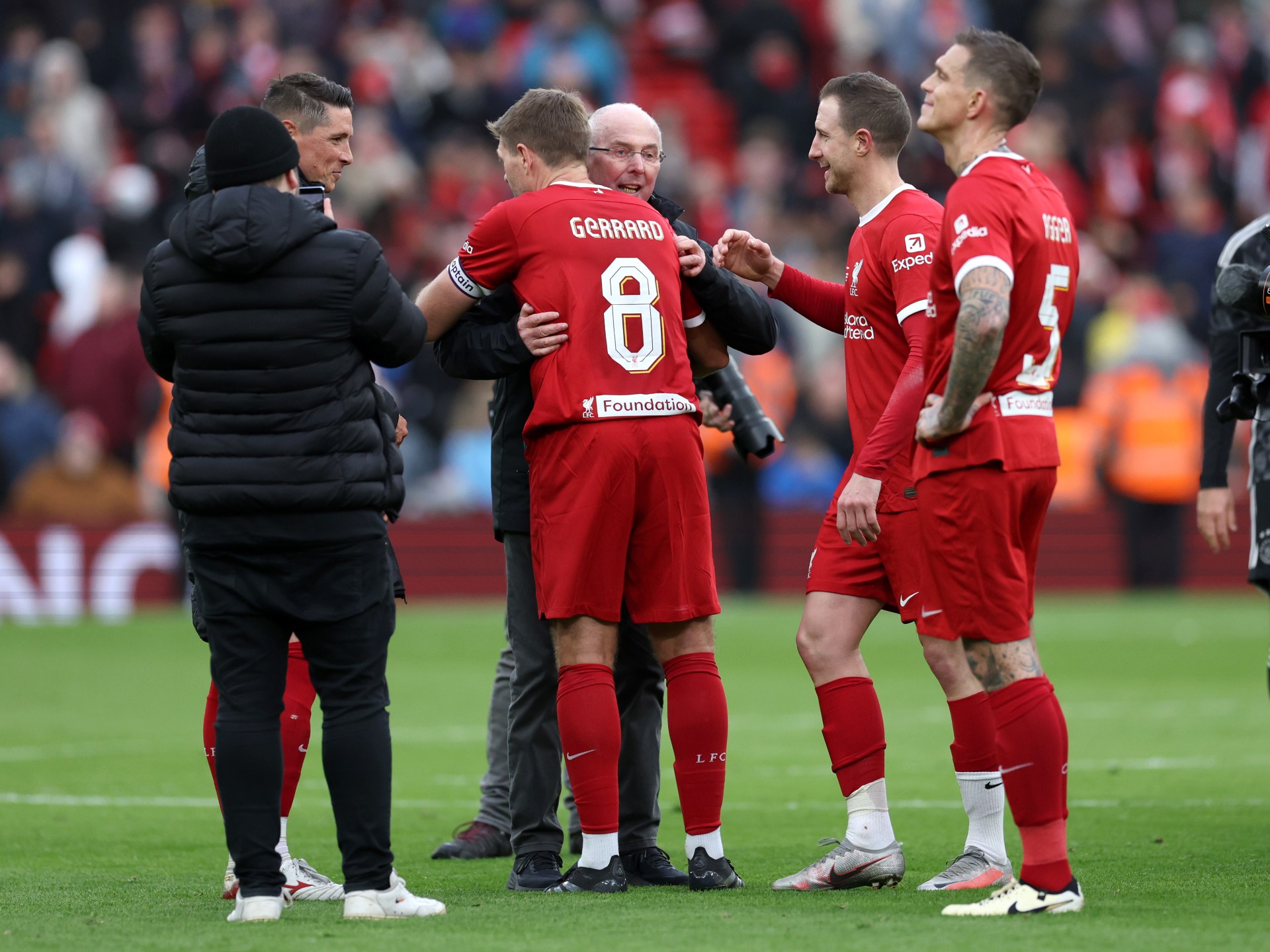 ودخل السويدي البالغ من العمر 76 عاما، أرض الملعب بابتسامة عريضة، في حين كانت الجماهير تلوّح بأوشحة حمراء وتنشد أغنية النادي الشهيرة “لن تسير وحدك أبدا”، قبل صافرة بداية المباراة التي انتهت بفوز أساطير ليفربول على أساطير أياكس 4-2.