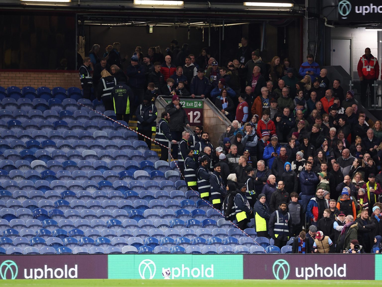وكتب المراسل الإنجليزي “ستيف مادلي” -الذي كان حاضرا في ملعب المباراة- على منصة إكس “تم إخلاء جزء من مدرج جيمي ماكيلروي، بسبب تعليق قطعة معدنية بشكل خطير من السقف العلوي، مشجعو بيرنلي الحاضرون في تلك المقاعد مدعوون لمشاهدة بقية المباراة في منطقة الجماهير بالنادي”.