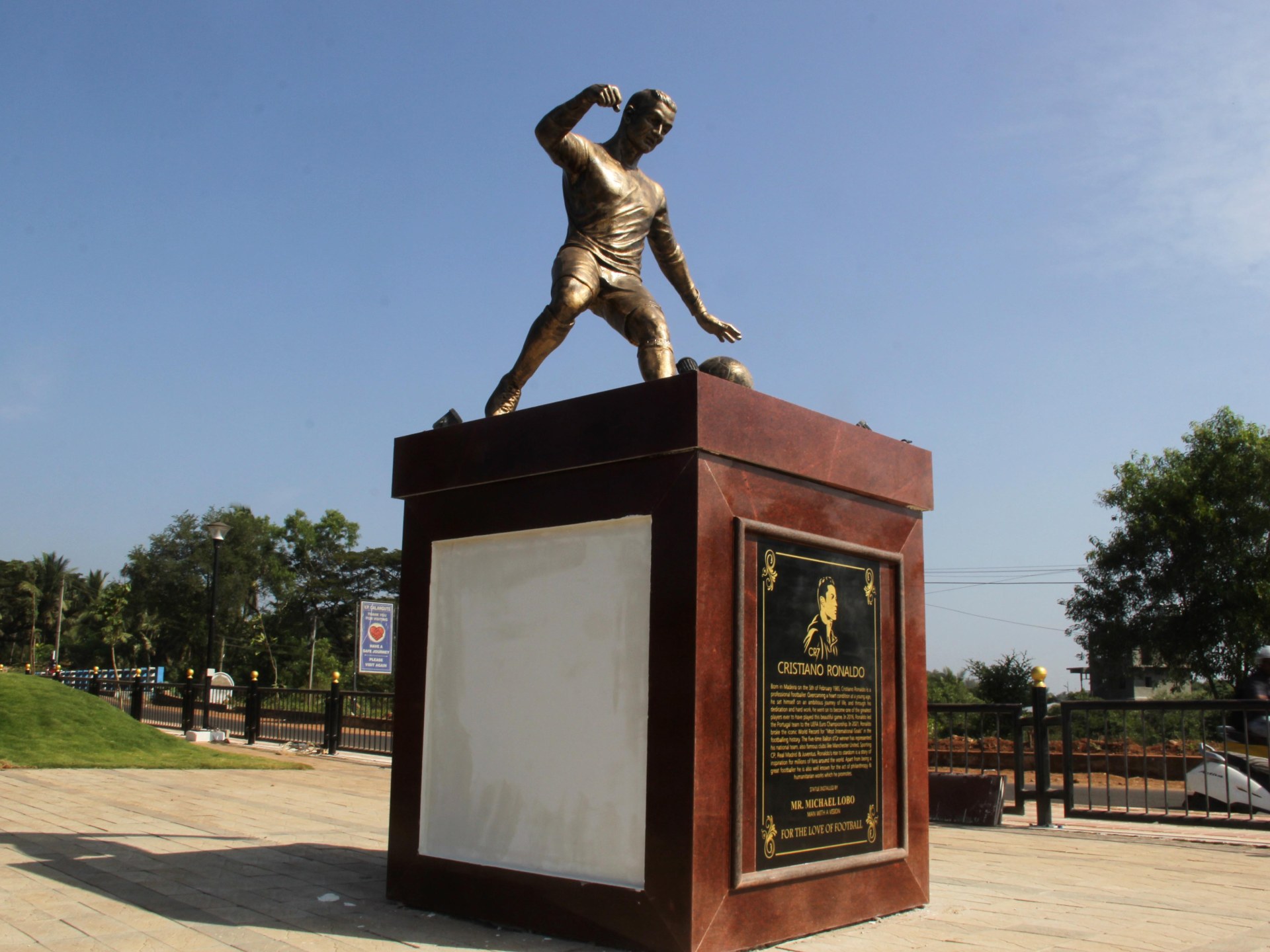 التقط البرتغالي كريستيانو رونالدو صورة مع تمثاله الذي كشف عنه في مطار ماديرا عام 2017، رغم أنه لا يبدو مثله على الإطلاق بابتسامة سخيفة وشعر شائك وتجويف فارغ في عينيه. إنه ببساطة تمثال سيئ.