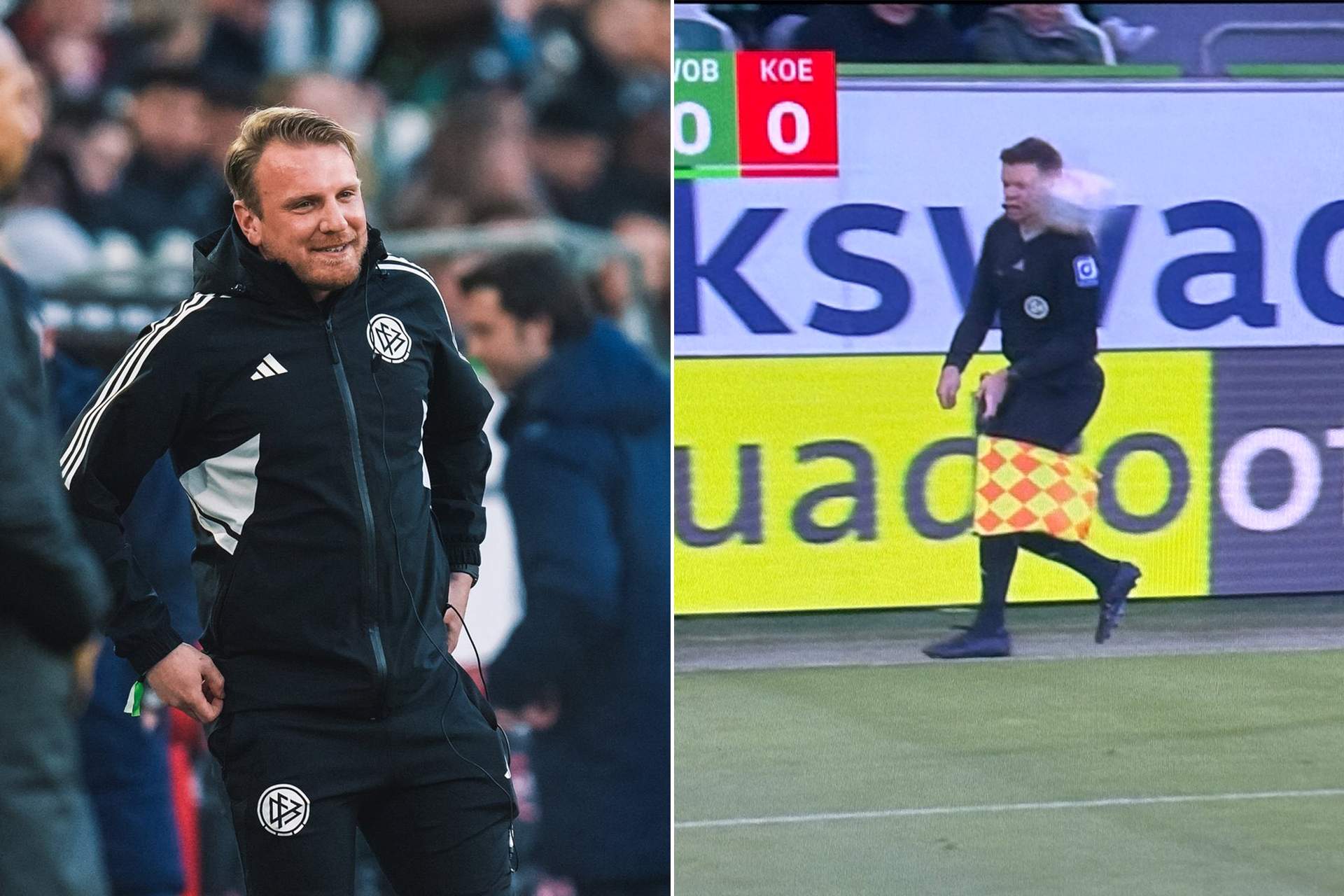 Balonazo al abanderado, no puede continuar en la cancha, entra el 4to árbitro y un ex jugador amateur, que estaba en la tribuna, bajó a la cancha a ser 4to árbitro en él Wolfsburg-Koln