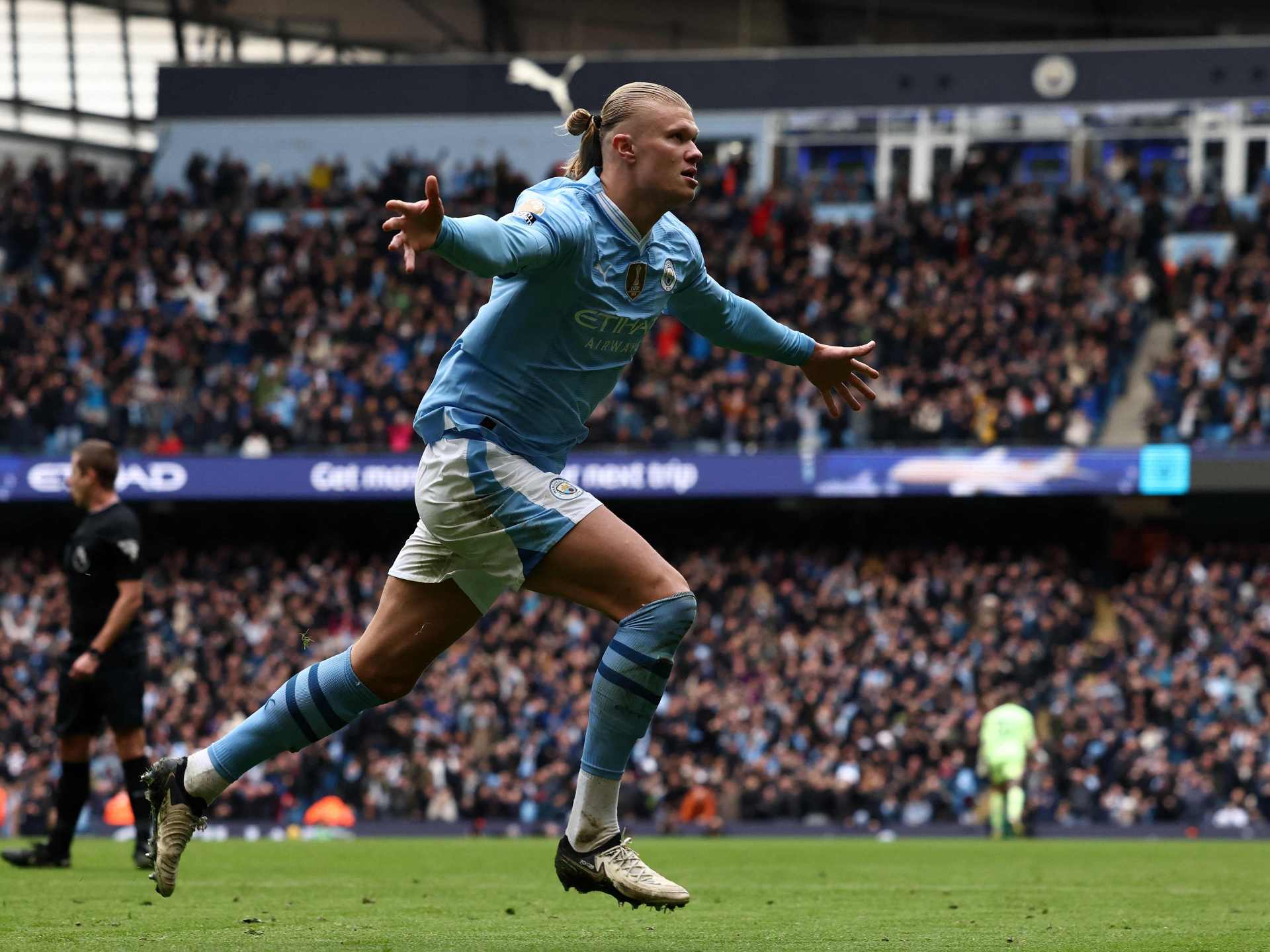 وسجل المهاجم النرويجي 28 هدفا في 31 مباراة مع مانشستر سيتي بجميع المسابقات هذا الموسم. ويحتل “السيتيزينز” حاليا المركز الثاني في الدوري الإنجليزي الممتاز، بفارق نقطة واحدة فقط عن ليفربول.