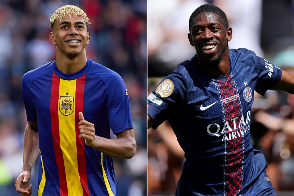 على الجهة المقابلة يبرز لامين جمال (18 عاما) كمنافس قوي لديمبيلي، إذ قاد برشلونة إلى التتويج بالثلاثية المحلية (الدوري، كأس الملك، السوبر) وجميعها على حساب الغريم ريال مدريد.