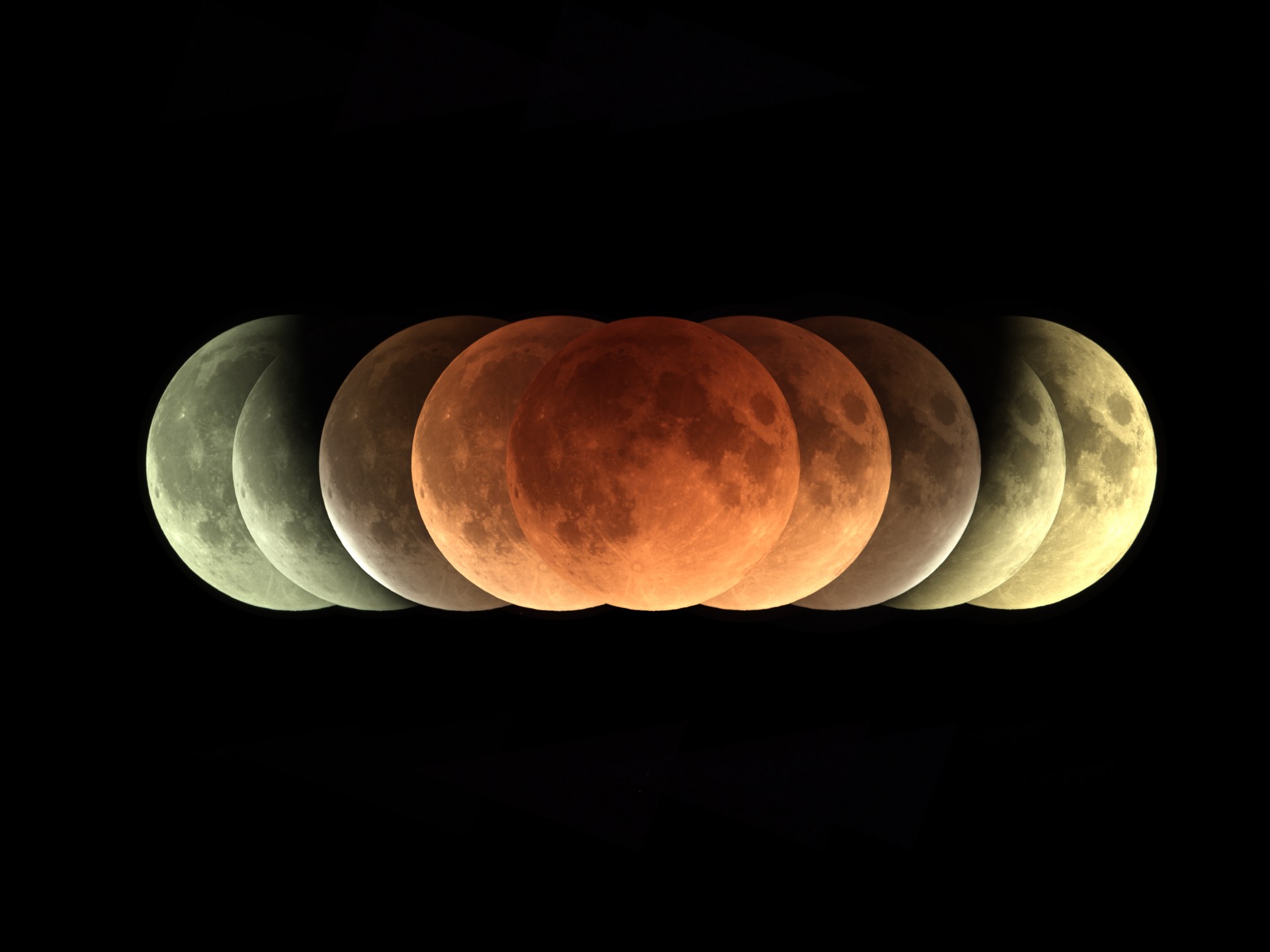 حينما يمر الغلاف الجوي يرشّح هذا الضوء، مما يدفع الجانب الأزرق من ضوء الشمس إلى التبعثر (مثلما يحدث في زرقة السماء)، بينما الجانب الأحمر من الضوء يمر أكثر. ونتيجة ذلك أن ما يصل إلى القمر هو ضوء أحمر إلى برتقالي فقط، فيعكسه إلينا، فنراه “قمرا دمويًّا”.
