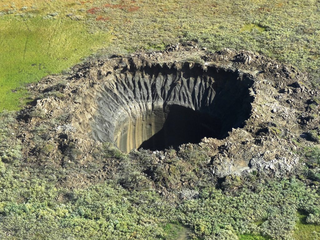 تتراوح سماكة التربة الصقيعية في شبه جزيرة يامال وجيدان من بضعة أمتار إلى نحو 500 متر، وقد تعرضت للتجمّد لأكثر من 40 ألف عام، لتحتجز الرواسب البحرية الغنية بالميثان وتتجمع على هيئة خزّانات مدفونة من الغاز الطبيعي. وبطبيعة الحال، تنبعث من هذه الخزانات حرارة تدفع التربة الصقيعية إلى الذوبان من الأسفل وتكوين جيوب غازية.