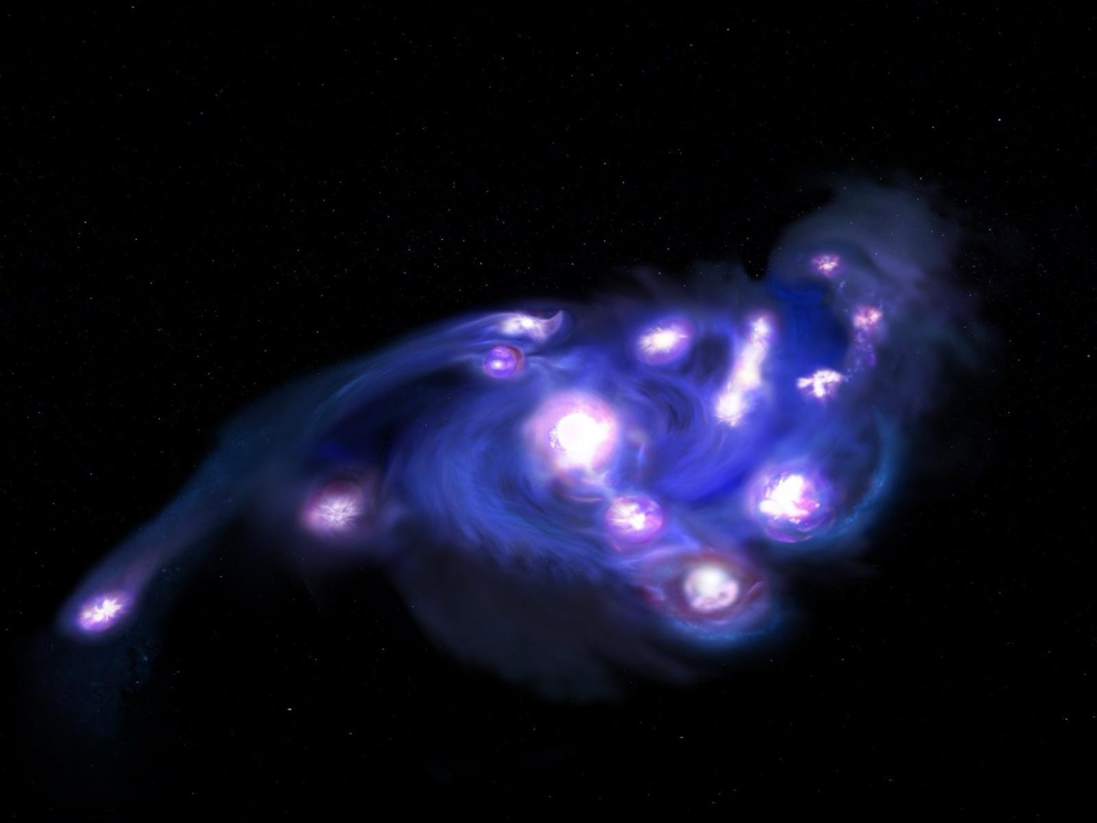 المجرة، التي تكوّنت قبل نحو 930 مليون سنة من الانفجار العظيم، بدت في صور تلسكوب هابل مجرد قرص ناعم يدور بانتظام، لكن بفضل تلسكوب جيمس ويب الفضائي ومصفوفة “ألما” (مجموعة ضخمة من التلسكوبات الراديوية في صحراء أتاكاما في تشيلي)، ومع استخدام ظاهرة عدسة الجاذبية التي تعمل كمكبر طبيعي، ظهرت المفاجأة، وهي أنها عبارة عن أكثر من 15 كتلة ضخمة وكثيفة من الغاز والنجوم المتكونة حديثا، والمرتبة مثل عنقود عنب مضيء.