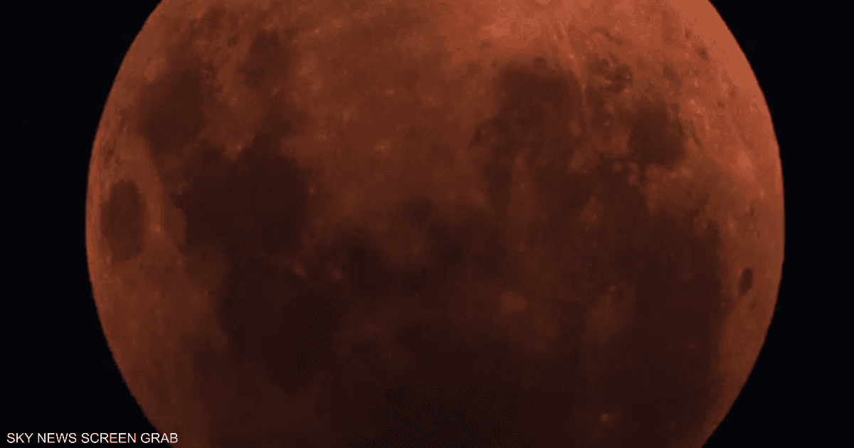 يتحول لون القمر إلى الأحمر أثناء انزلاقه إلى ظل الأرض الذي يحجب أشعة الشمس، ويفقد تدريجيا بريقه الأبيض.