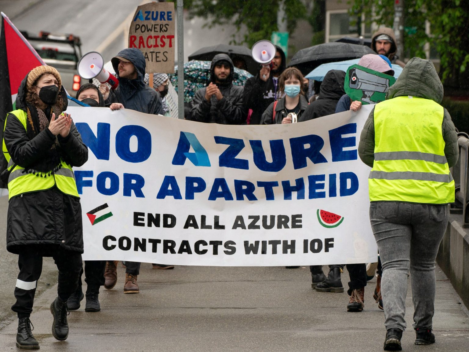 والثلاثاء، تجمع موظفون حاليون وسابقون من مايكروسوفت وناشطون ومواطنون في مقر الشركة بولاية واشنطن احتجاجا على الخدمات والبنية التحتية التكنولوجية التي تقول تقارير إعلامية إن الشركة تقدمها للجيش الإسرائيلي.