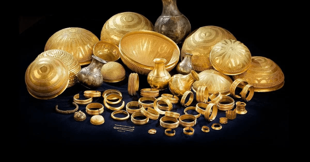 ويبلغ عدد هذه القطع الأثرية 59 قطعة، وهي عبارة عن زجاجات وأوعية مطلية بالذهب وقطع مجوهرات مصنوعة بشكل رائع. ويُطلق على المجموعة كاملة “كنز فيلينا” التي رُفِع عنها الحجاب عام 1963، وحدد العلماء أنّ ثمّة عنصرا دخيلا من مكونات القطع وهو الحديد النيزكي، وهو ما يُعتقد بأنّه من بقايا عمر الكون في مراحله الأولى التي توجد حصرا في النيازك التي تتكون من الحديد والنيكل.
