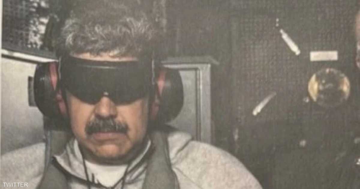 وظهر الرئيس الفنزويلي في الصورة بملابس رياضية، معصوب العينين ومكبل اليدين، بينما حمل قنينة مياه صغيرة.